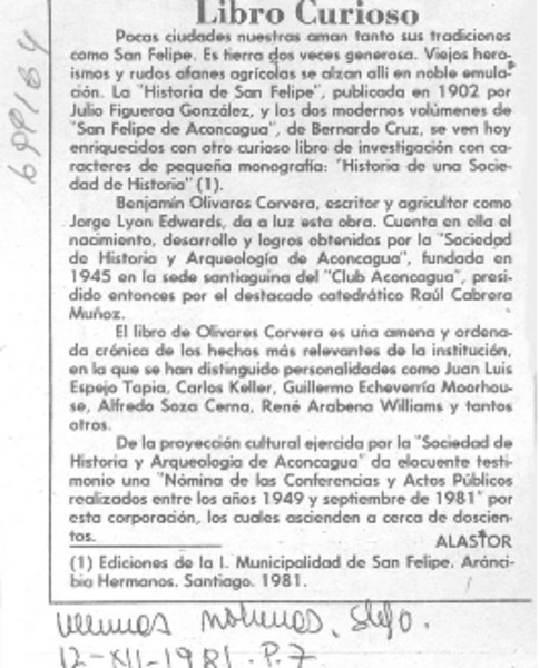 Vino añejo de las leyendas nortinas [artículo] Alfredo Aranda