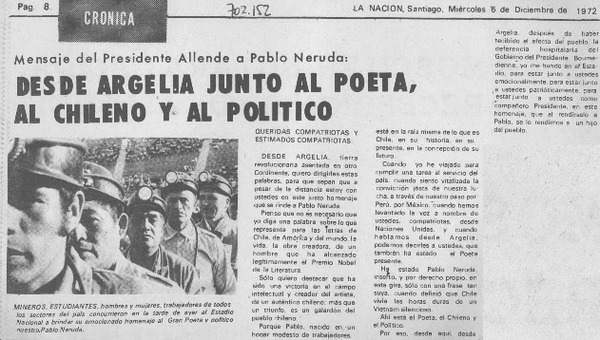 Allende, desde Argelia: "Neruda está en la raíz misma de lo que es Chile y su historia". [artículo]