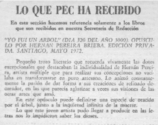 Yo fui un árbol - Pereira Brieba, Hernán - Autores chilenos