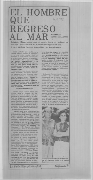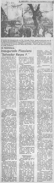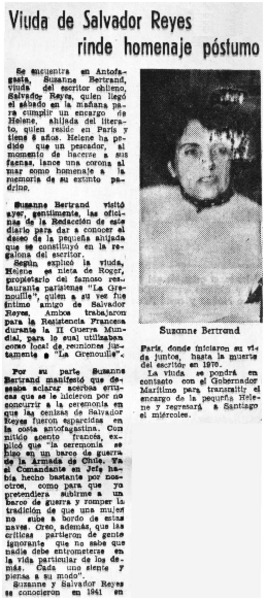 Viuda de Salvador Reyes rinde homenaje póstumo. [artículo]
