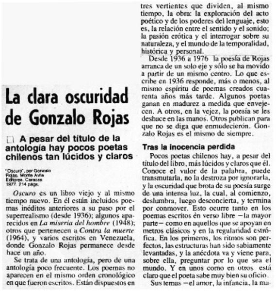 Víctor Franzani: "Ardida sangre" [artículo] Hernán del Solar.