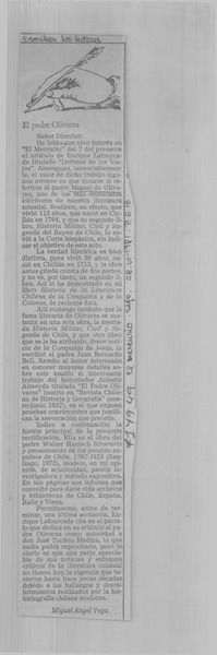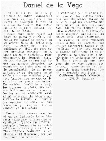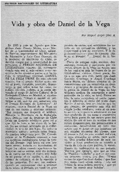 Vida y obra de Daniel de la Vega [artículo] Por, Miguel Angel Díaz A.