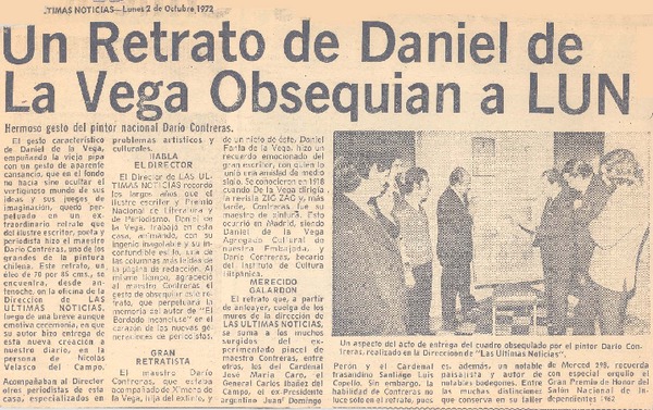 Un retrato de Daniel de la Vega obsequian a LUN. [artículo]