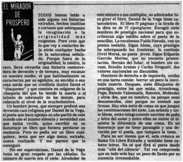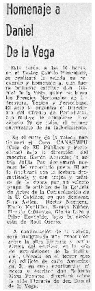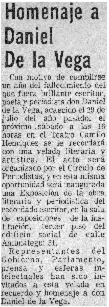 Un significativo homenaje a Daniel de la Vega. [artículo]
