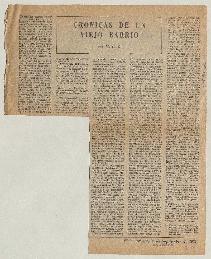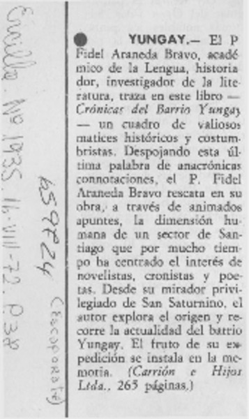 Autores chilenos - Crónicas del barrio Yungay - Araneda Bravo, Fidel