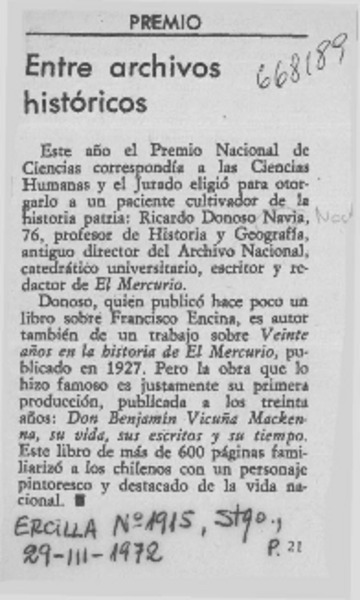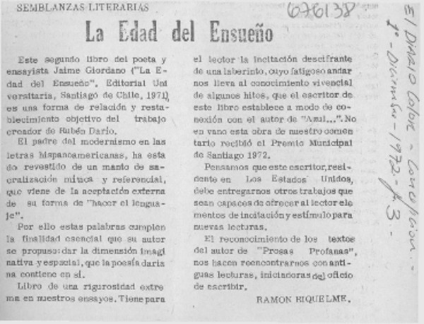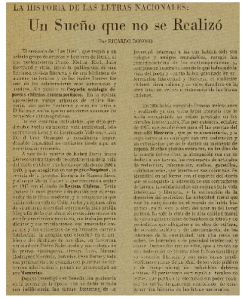 Un Sueño que no se realizó [artículo] Ricardo Donoso.