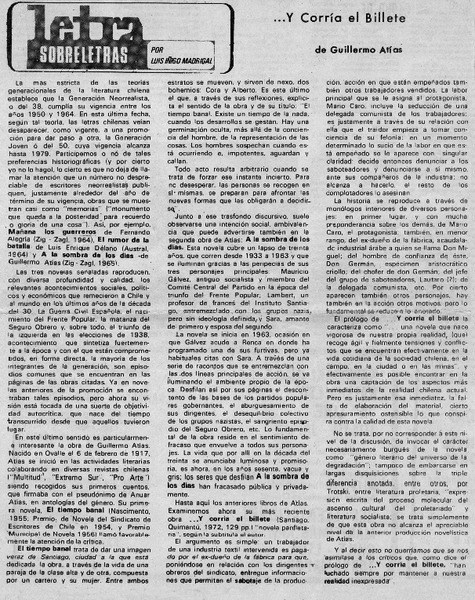 Y corría el billete [artículo] Luis Iñigo Madrigal.