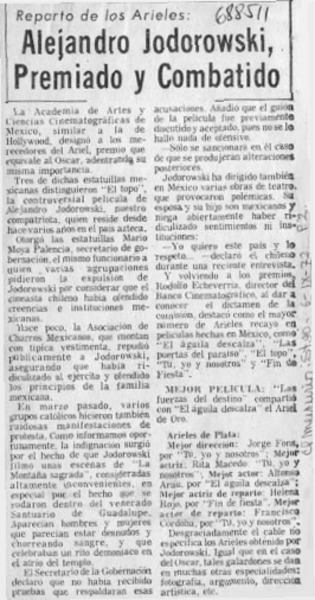 Alejandro Jodorowski, premiado y combatido. [artículo]