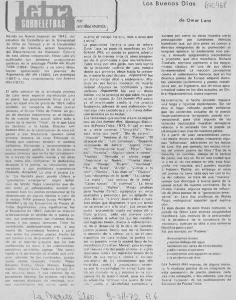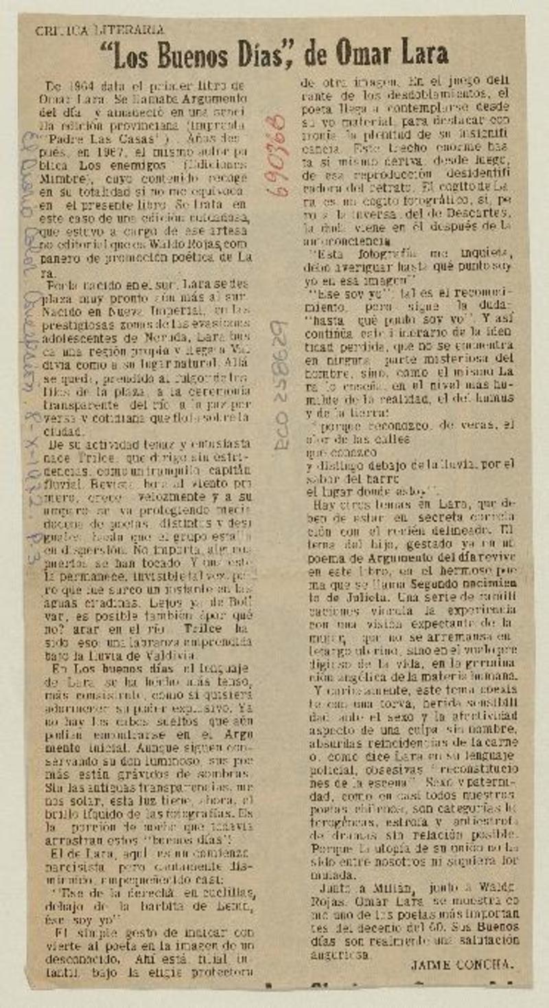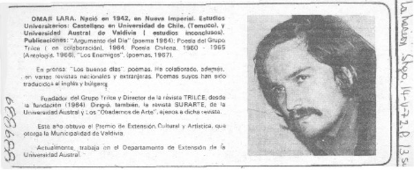 Un poeta del amor: Omar Lara [artículo] Oscar Muñoz.