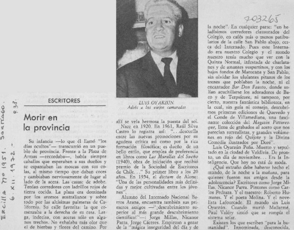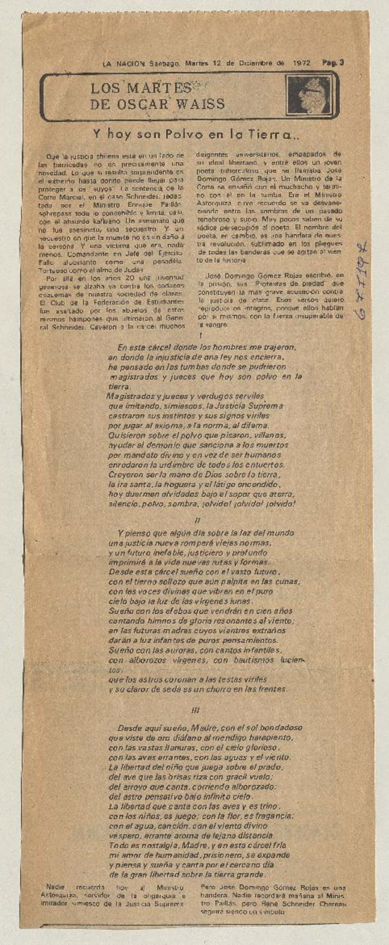 Y hoy son polvo en la tierra [artículo] Oscar Waiss.