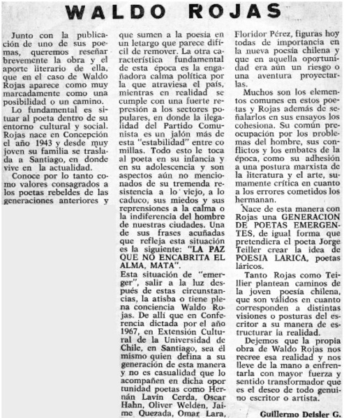 Waldo Rojas [artículo] Guillermo Deisler G.