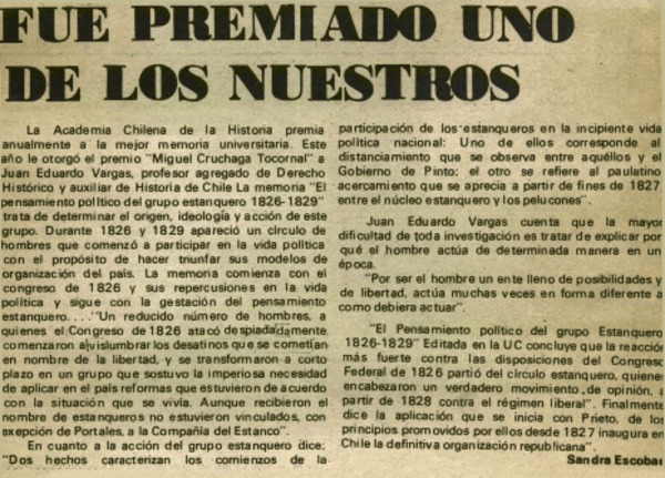 Vallenarino ganó concurso de la U. T. E. [artículo]