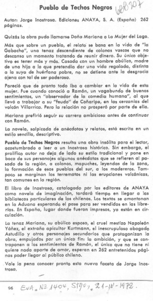 Autores chilenos - Inostrosa, Jorge - Pueblo de techos negros