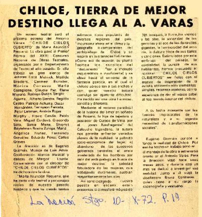 Autoras chilenas - Requena, María Asunción - Chiloé, Cielos cubiertos