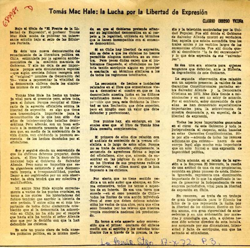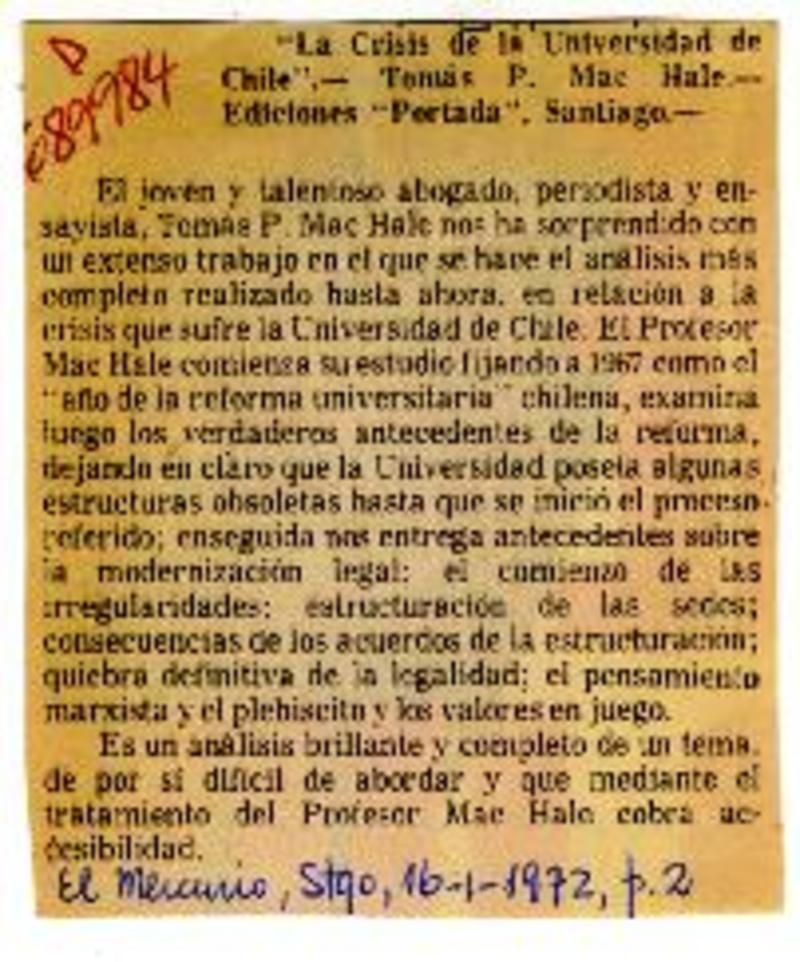 Visión crítica de Chile [artículo] Tomás P. Mac Hale.