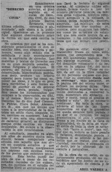 Derecho civil" [artículo] Abel Valdés A.
