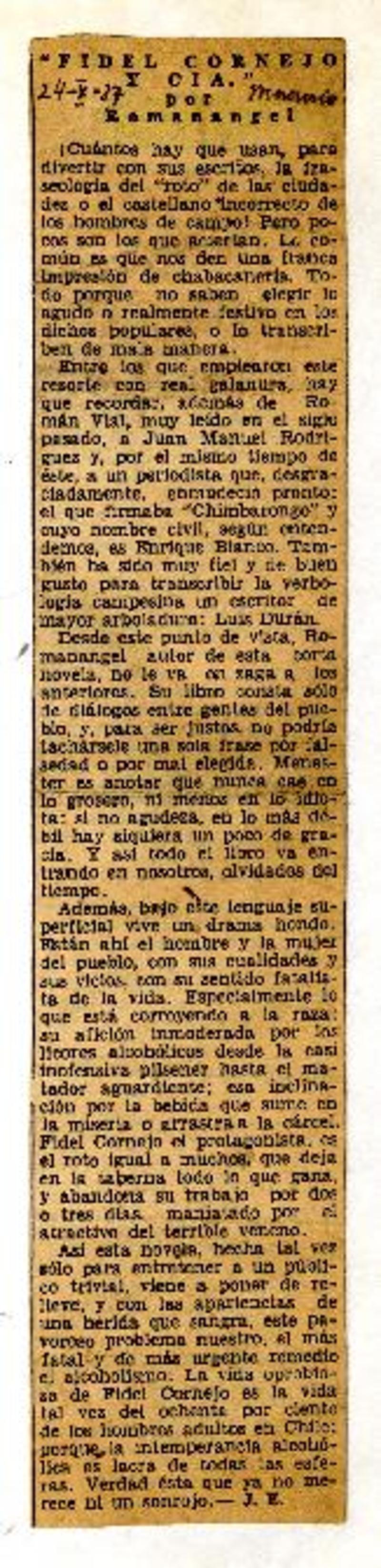 "Fidel Cornejo y Cía" [artículo] J. E.