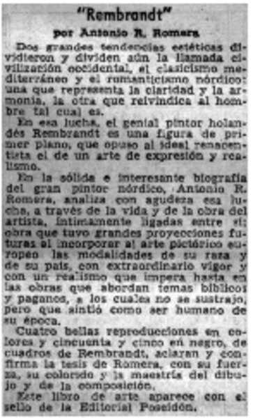 Romera, Antonio R. - Autores chilenos - Rembrandt