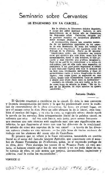 Seminario sobre Cervantes [artículo] Antonio Doddis.