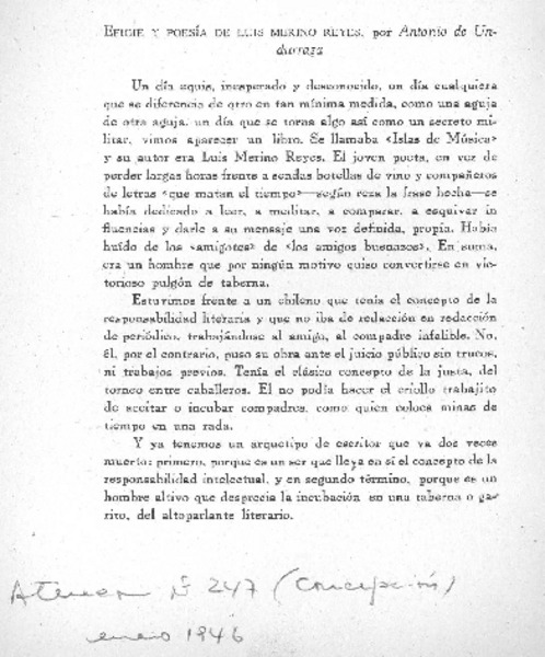 Efigie y poesía de Luis Merino Reyes [artículo] Antonio de Undurraga.