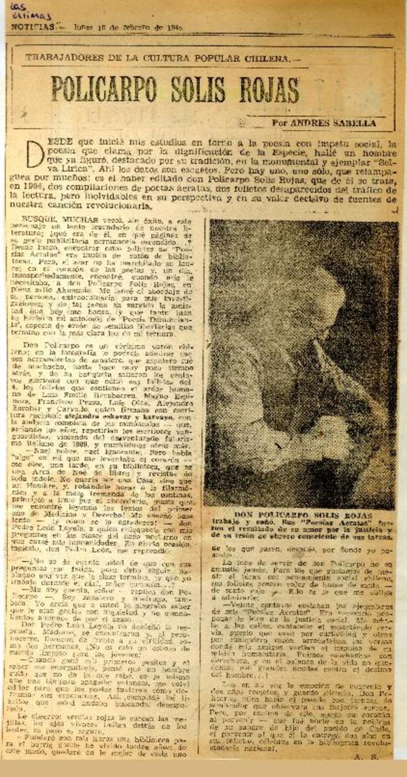Policarpo Solís Rojas [artículo] Andrés Sabella.