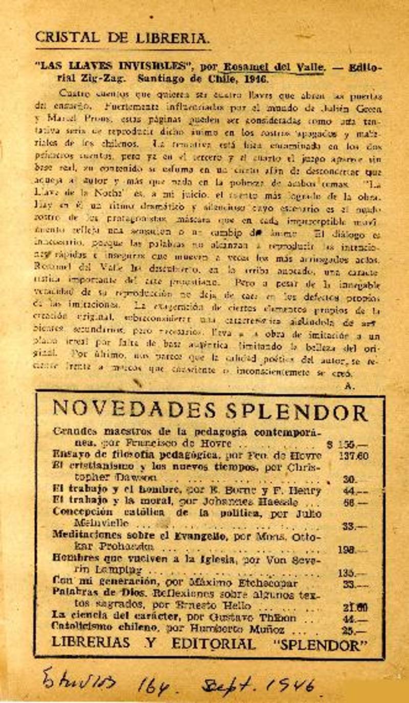 Autores chilenos - Valle, Rosamel del - Las llaves invisibles