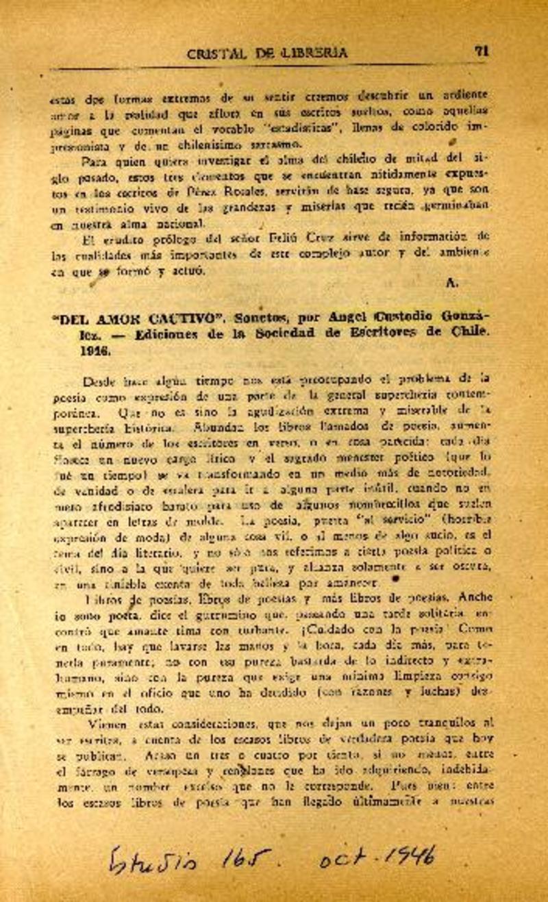 Autores chilenos - González, Angel Custodio - Del amor cautivo