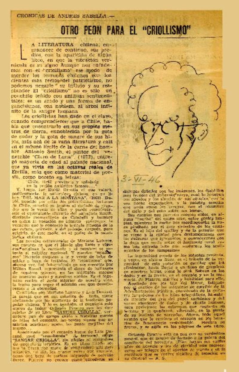 Otro peon para el "criollismo" [artículo] Andrés Sabella.
