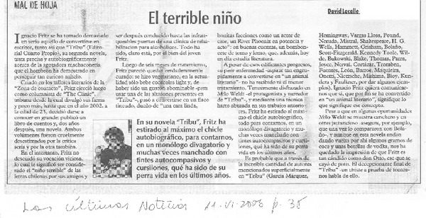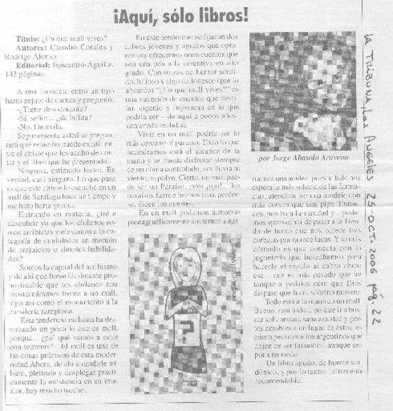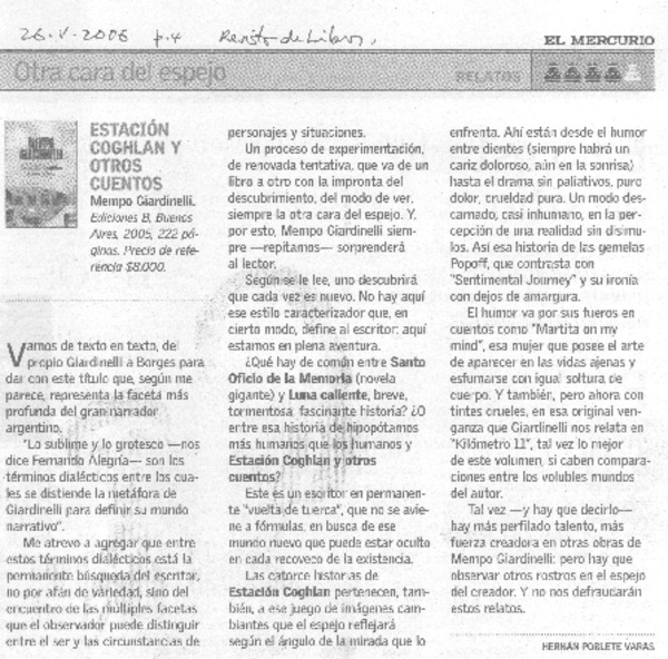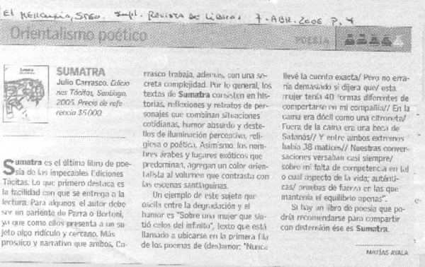 Acaba de entrar a librerías chilenas Abril Rojo, de Santiago Roncagliolo, Premio Alfaguara de Novela 2006 : llega novela que retrata la violencia política en Perú [artículo] Andrés Gómez Bravo.
