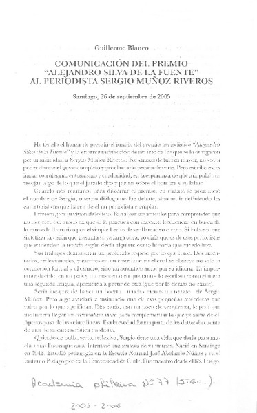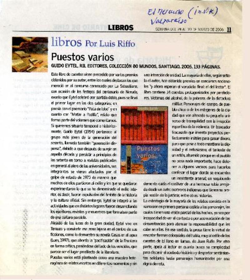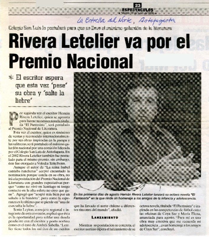 Visita ilustre [artículo]Luis Riffo.