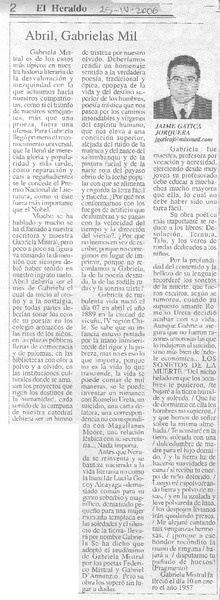 Abril, Gabrielas Mil [artículo] Jaime Gatica Jorquera.