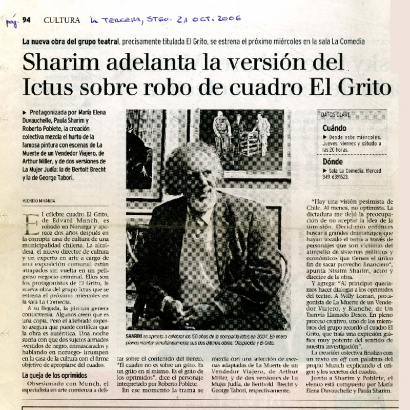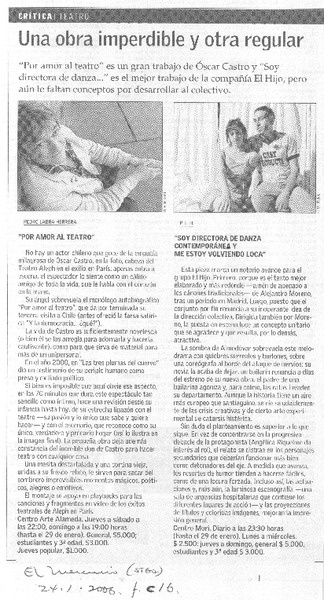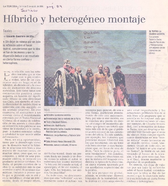 Autores chilenos - Lemebel, Pedro - Tengo miedo torero - Chilean bussiness (Compañía de Teatro: Chile)