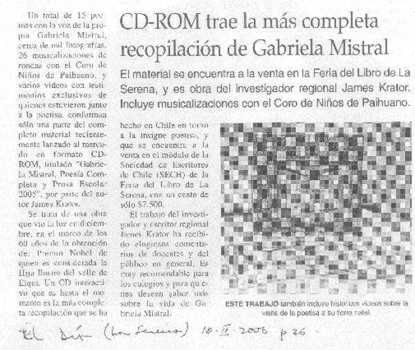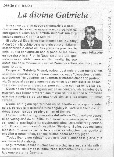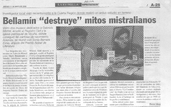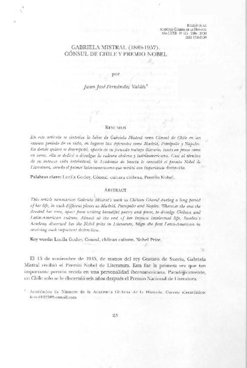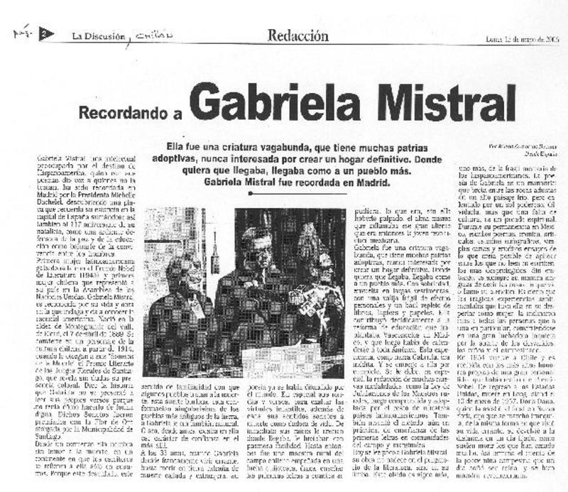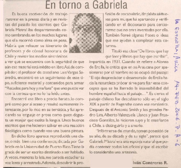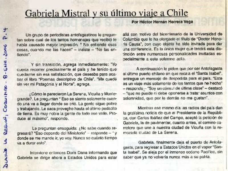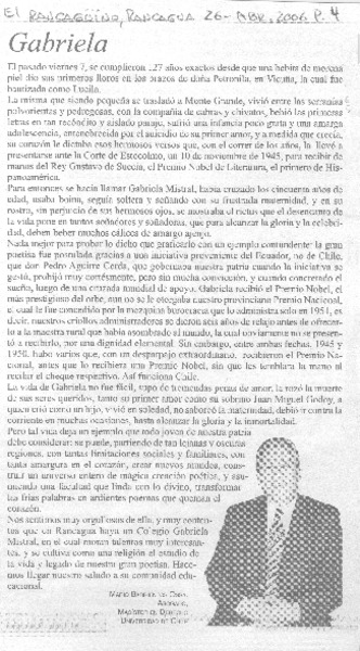 49 años de la muerte de nuestra Gabriela [artículo] Juan Meza Sepúlveda.