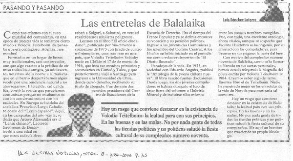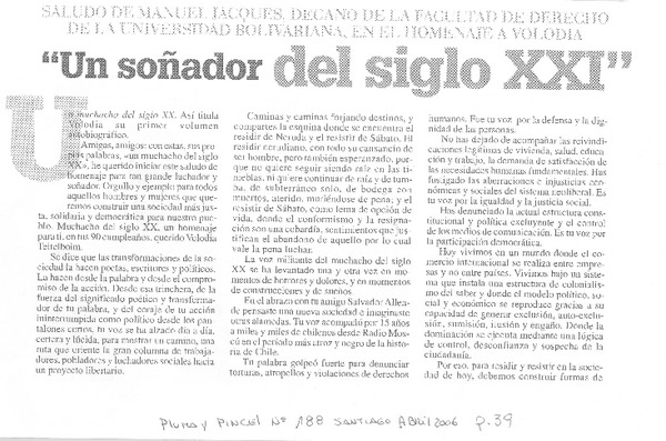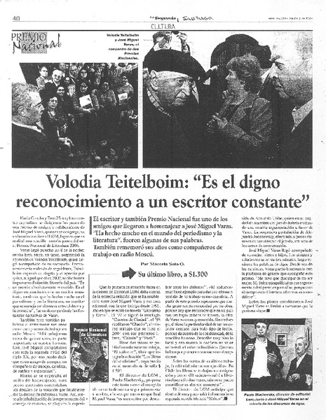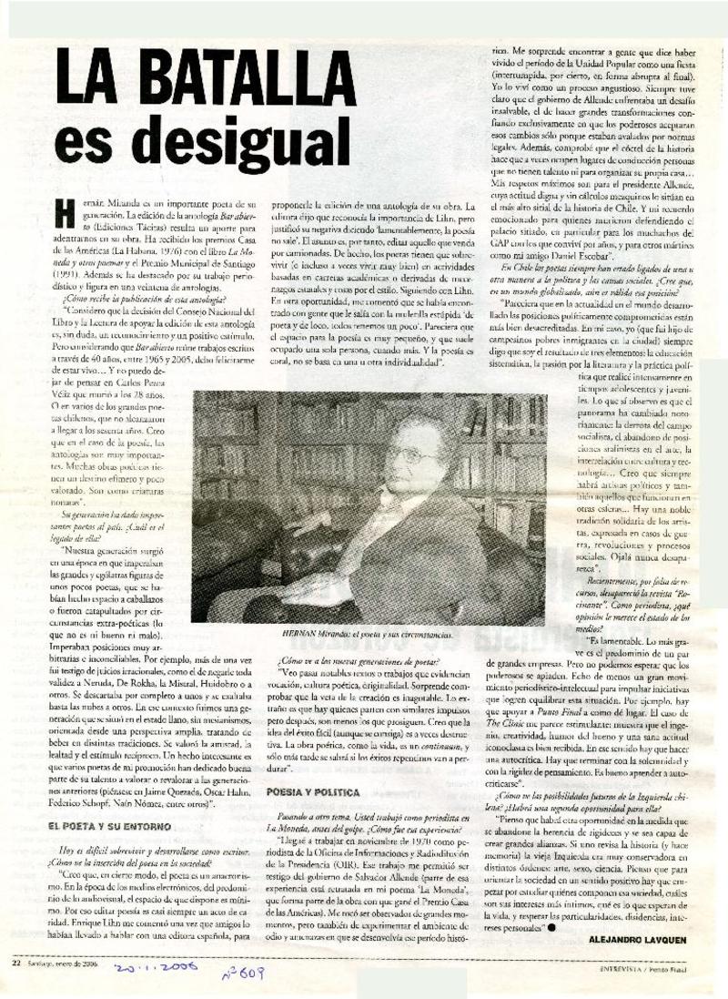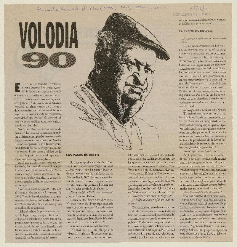 Volodia 90 [entrevista] [artículo] Luis Alberto Mansilla