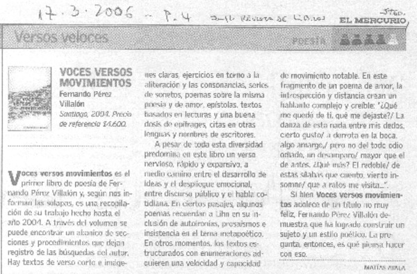 Autores chilenos - Pérez Villalón, Fernando - Voces versos movimientos