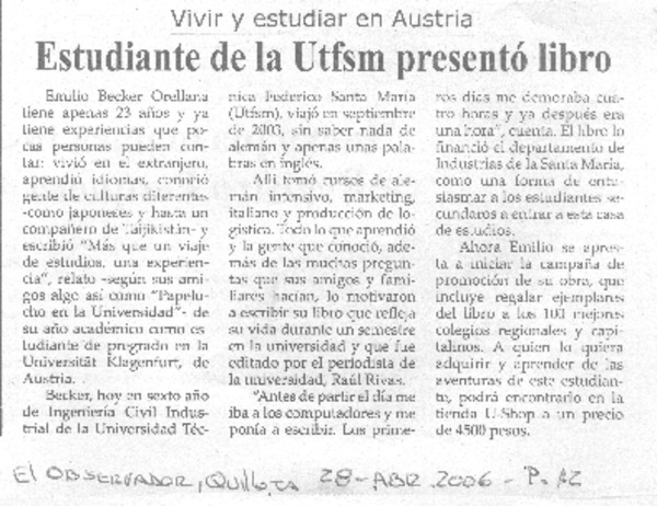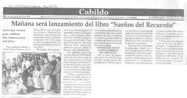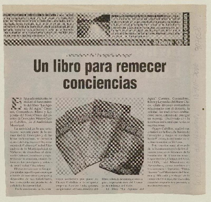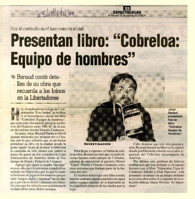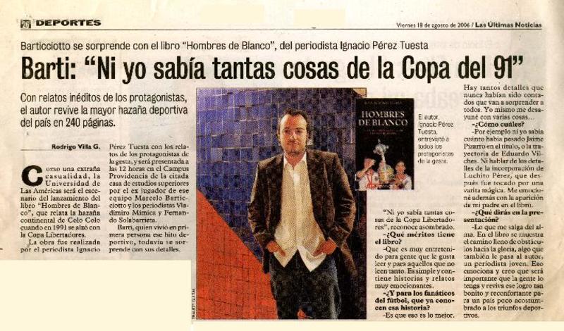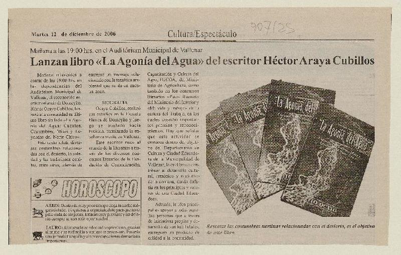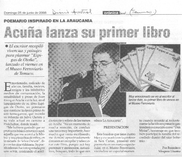 Acuña lanza su primer libro [artículo] Francisco Vásquez Lizama.