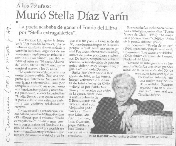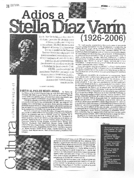 Adiós a Stella Díaz Varín. [artículo] Aristóteles España.