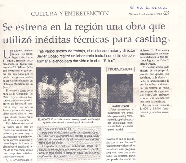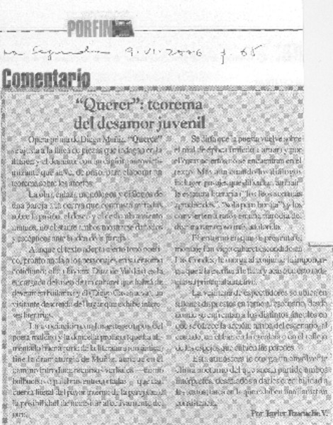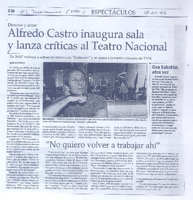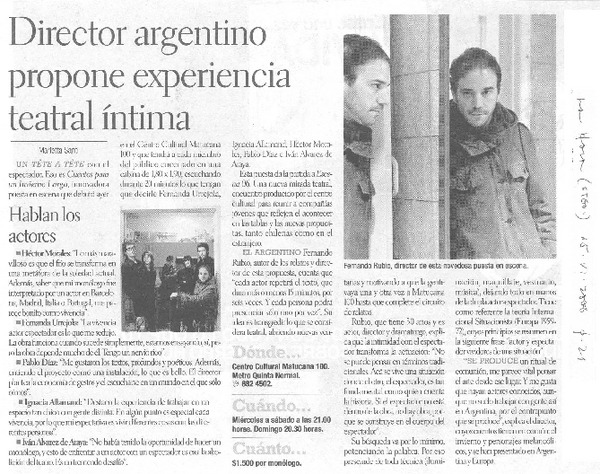 Abel Carrizo-Muñoz "me cansé de hacer el mismo teatro de siempre" (entrevistas) [artículo] Segovia, Valeria