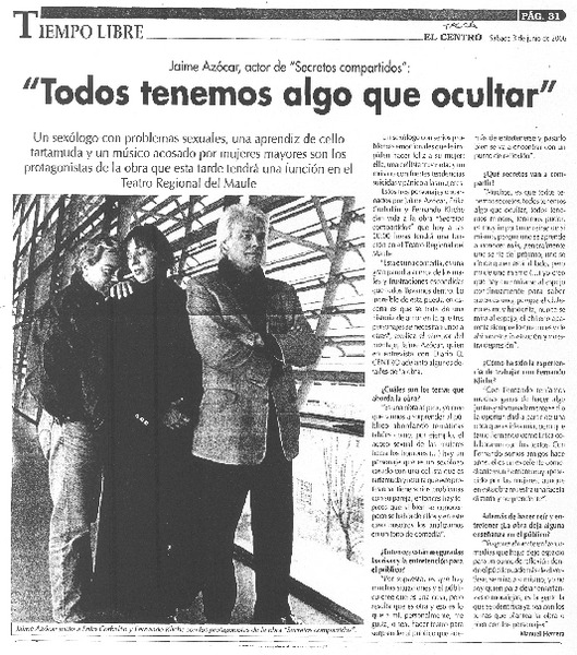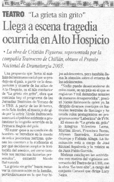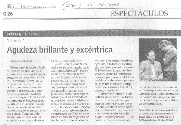 Aclamada obra "Criminal" llega mañana al Teatro del Maule [artículo] María José Cabezas.