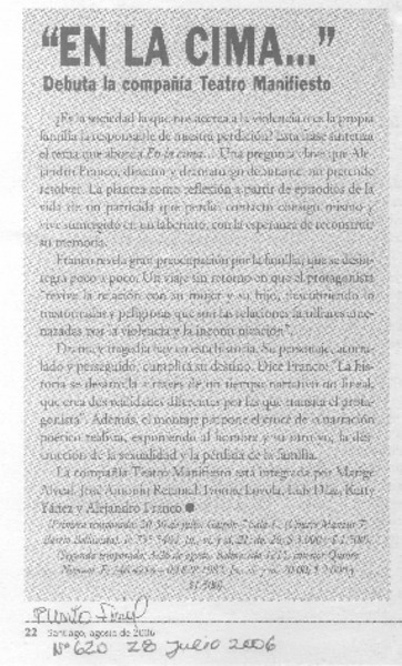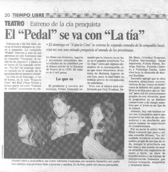 Actores de Gatas&Tuercas se reúnen en comedia negra teatral. [artículo] Cristián Campos M.