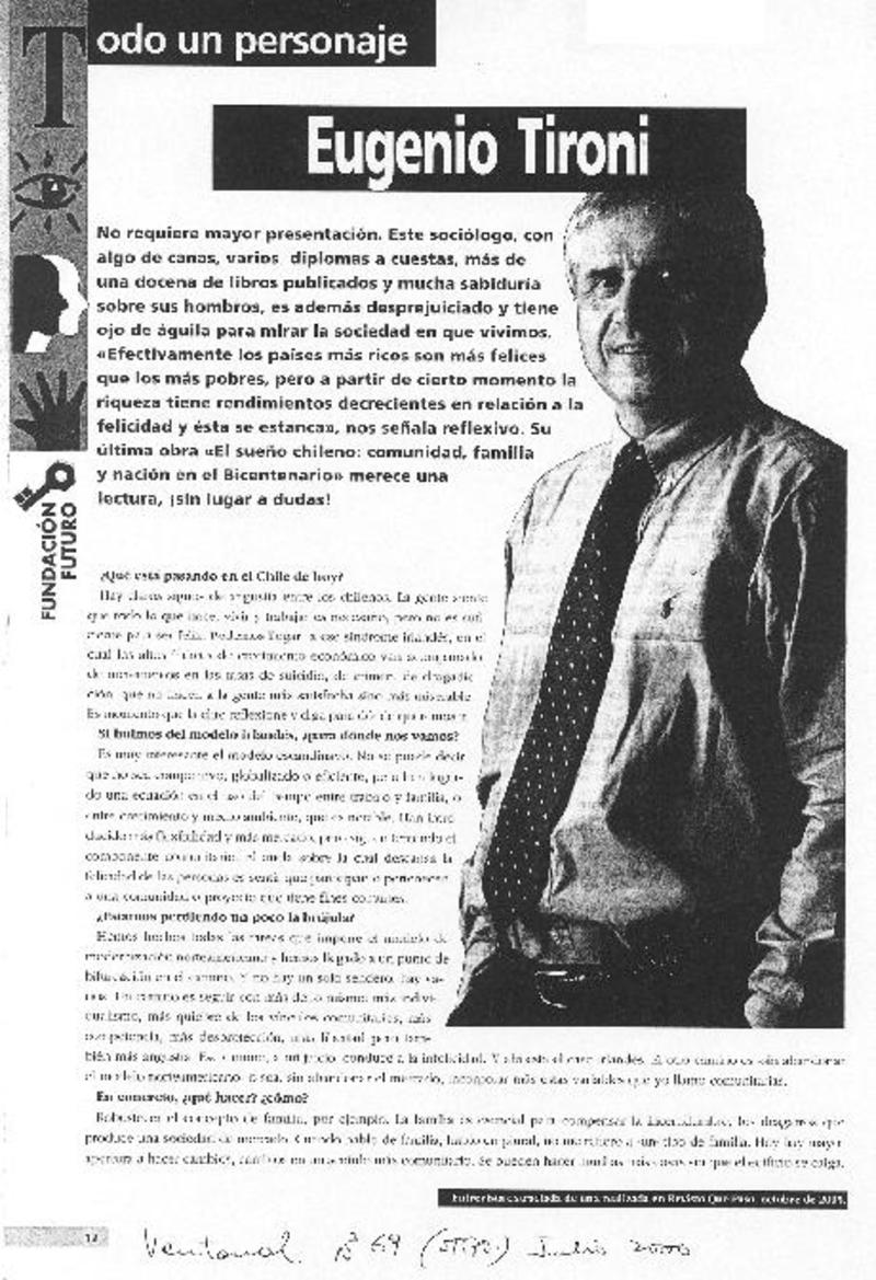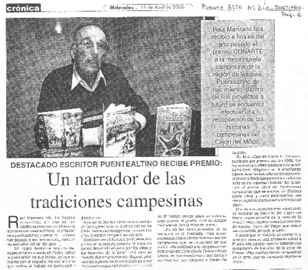 Acusa el Premio Nacional de Historia Podria crecer el peonaje ilustrado [artículo] : texto y foto de Eduardo Henríquez O.