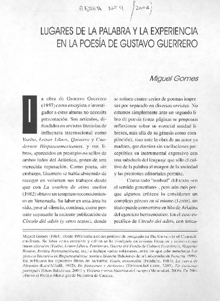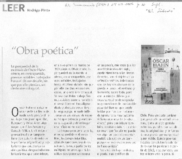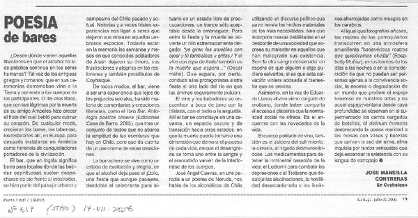 Vocación poética a pesar de todo y todos [artículo] Grínor Rojo.