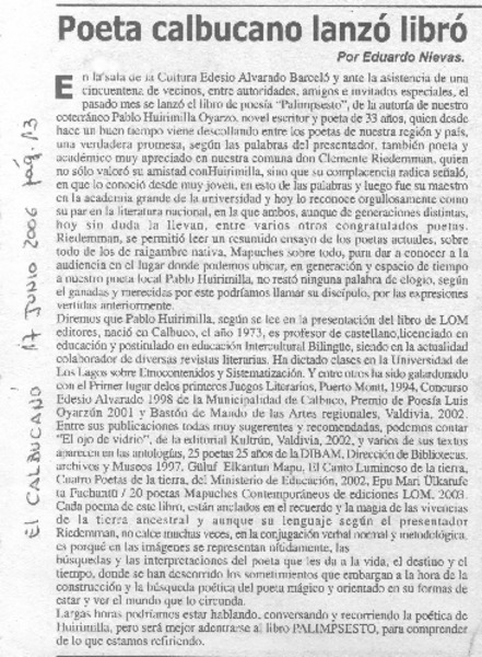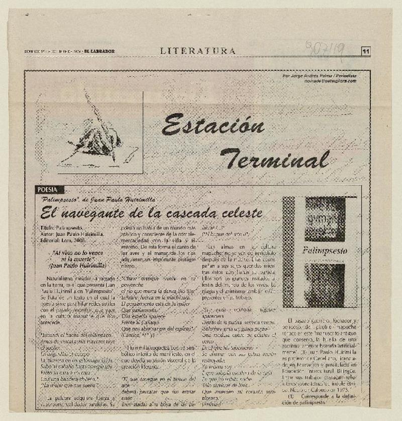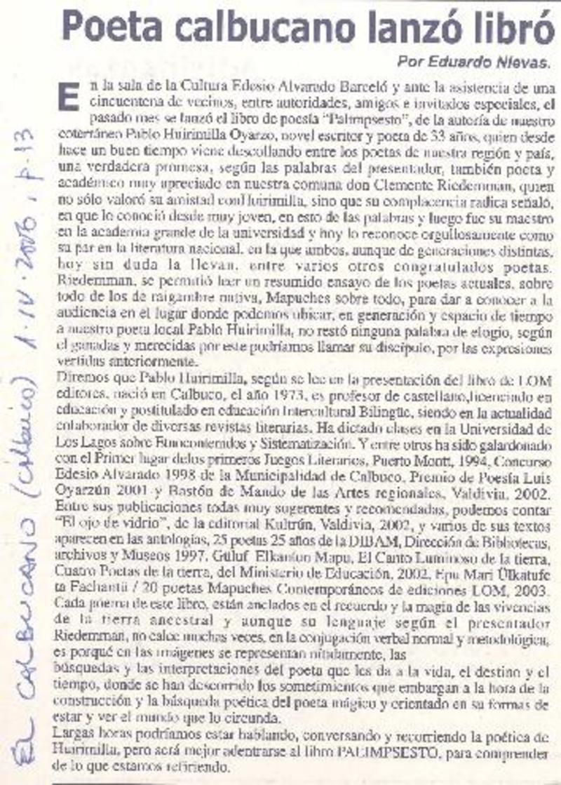 Autores chilenos - Huirimilla, Juan Pablo - Palimpsesto