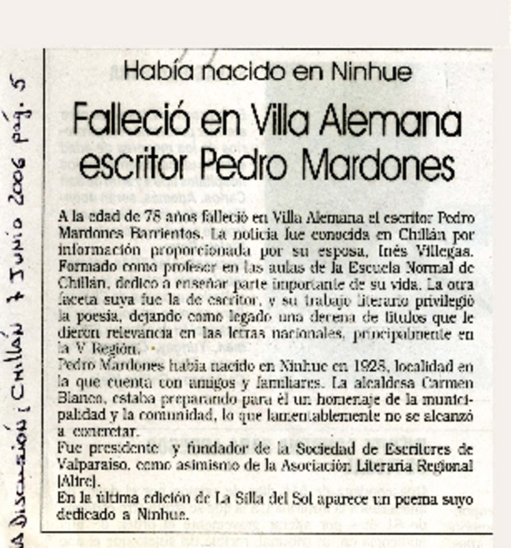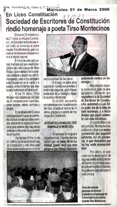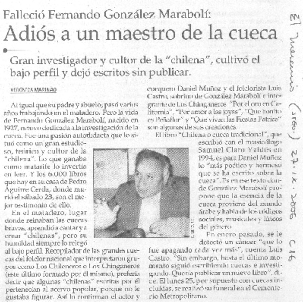 Adiós a un maestro de la cueca. [artículo] Verónica Marinao.