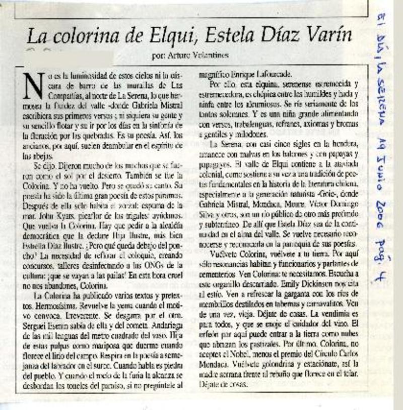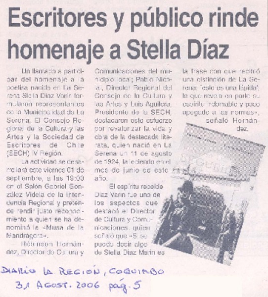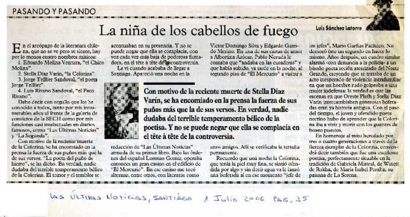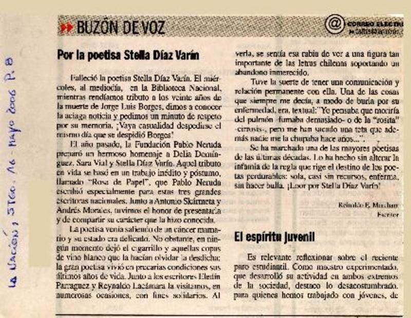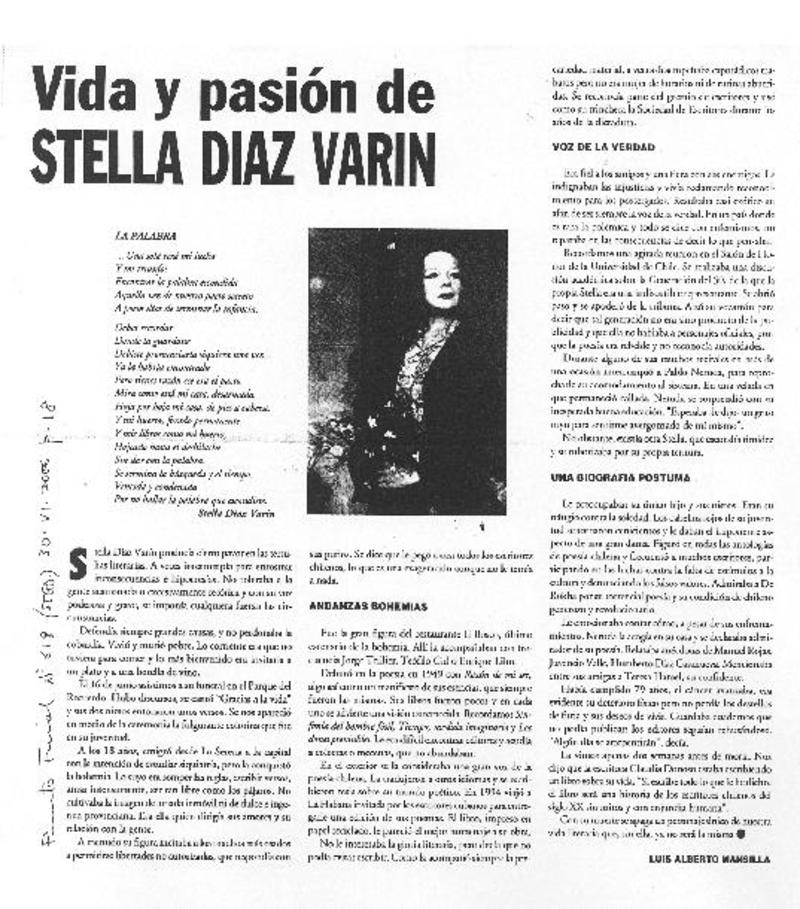 Vida y pasión de Stella Díaz Varín [artículo] Luis Alberto Manislla.