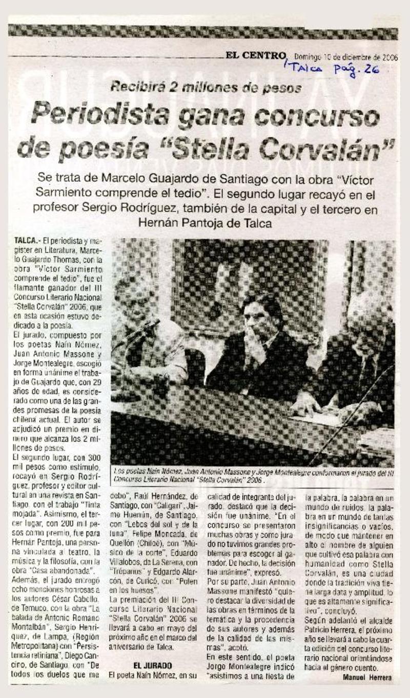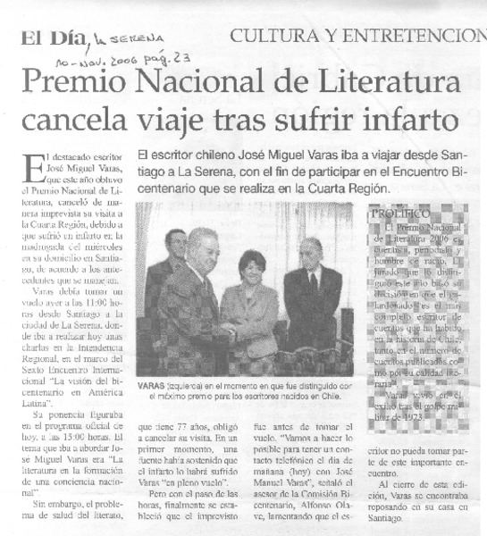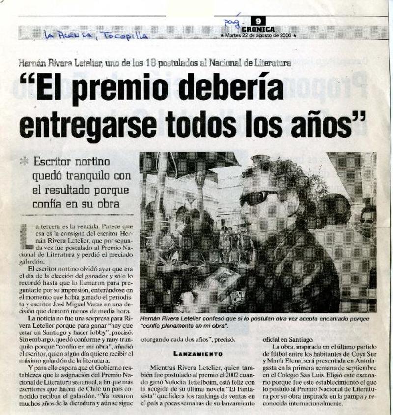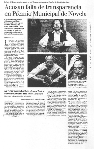 Acusan falta de transparencia en Premio Municipal de Novela [artículo] Andrés Gómez Bravo.