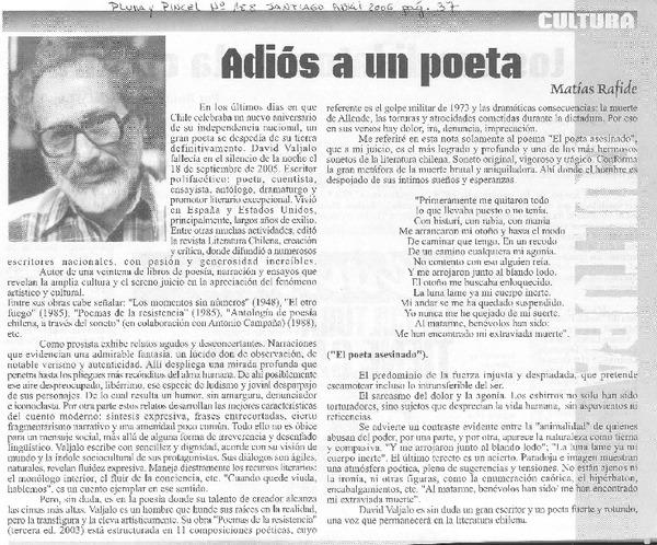 Adiós a un poeta [artículo] Matías Rafide.
