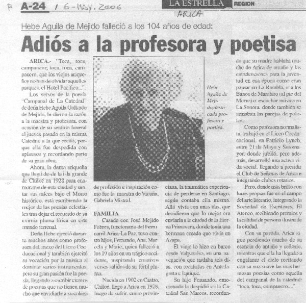 Autores chilenos - Aguila de Mejía, Hebe