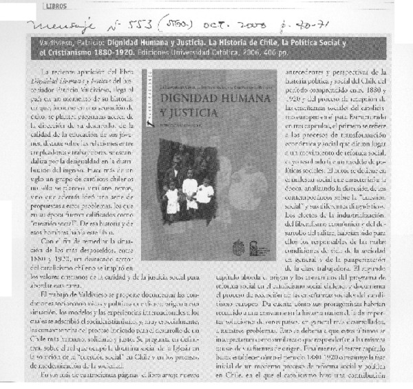Voz nueva en una vieja tradición [artículo] Jaime Valdivieso B.
