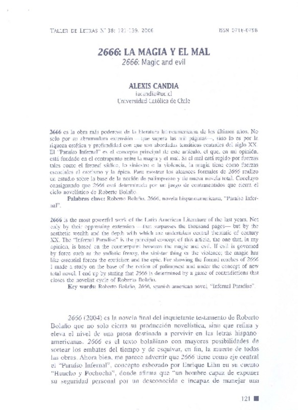 2666: La magia y el mal [artículo]Alexis Candia.